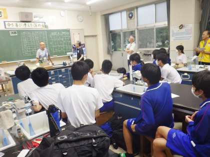 豊田少年少女発明クラブの方が情報科学部の生徒に助言を行っている場面です。