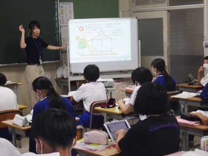 7/13(木) 授業の様子です(2年生) 2 公開日 2023/07/13 更新日 2023/07/13 お知らせ 22学級は、家庭科の「持続可能な住生活をめざして」の授業の様子です。デジタル教科書の映像を見ながら、資源や再生可能エネルギーの活用について確認していました。また、デジタル教科書の資料を見て気づいたことを積極的に発言していました。