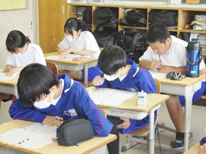13学級は、国語の「ちょっと立ち止まって」の単元テストの様子です。一問一問集中して大切に解いていました。