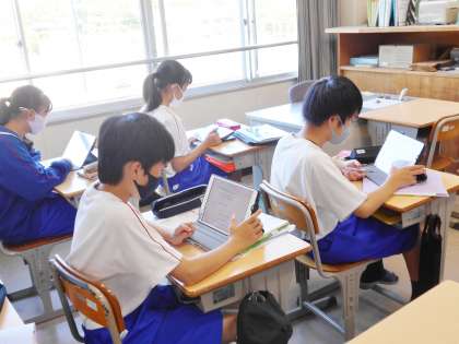 7/20(木) 授業の様子です(1年生) 2 公開日 2023/07/20 更新日 2023/07/20 お知らせ 12学級は、英語の「疑問詞」の授業の様子です。キュビナに掲載された疑問詞のまとめの問題を解いていました。キュビナの解説で確認しながら、考え方・解き方を振り返り、理解を深めていました。