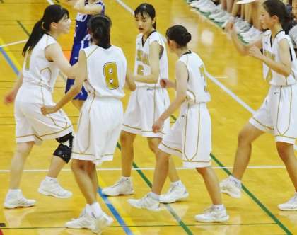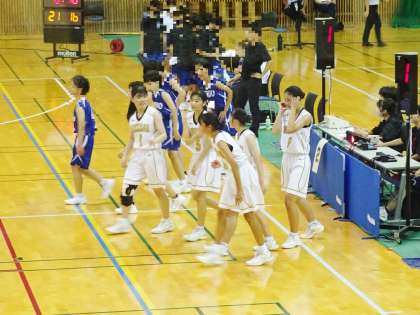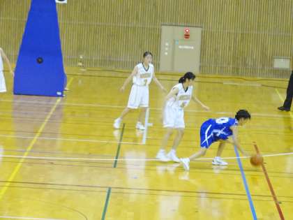 写真は、女子バスケットボール部の西尾中との試合の様子です。