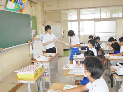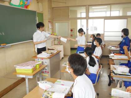21学級は、理科の授業の様子です。「植物のからだのつくりとはたらき」の単元テストを返却していました。この単元テストは来週行われる前期期末テストの範囲となっています。間違えた問題は確実に解けるようにしておきましょう。