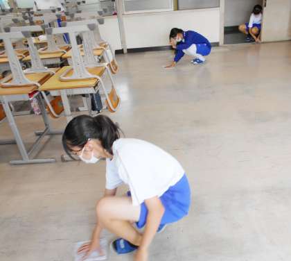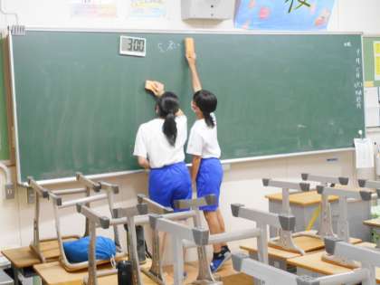 早いもので、中学校生活も約半年が経ちました。特別教室の場所もわからず戸惑っていた生徒も、中学校での清掃活動にも慣れ、学校の施設をきれいにしようと、意欲的に取り組んでいます。自分の役割を一生懸命行うのは素敵なことですね。