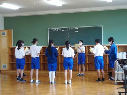 9/5(火) 授業の様子です(1年生) 3 公開日 2023/09/05 更新日 2023/09/05 お知らせ 13学級は音楽で、合唱コンクールで歌う曲のパート練習です。 パートリーダーが中心となり、ピアノ等に合わせて音取りを行っていました。 13学級の曲は「マイ・バラード」。心を一つに、素晴らしい歌声をつくりあげてください。
