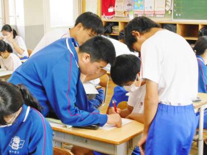 9/6(水) 授業の様子です(3年生) 1 公開日 2023/09/06 更新日 2023/09/06 お知らせ 3年生の授業の様子です。 31学級は、数学の「二次方程式」の授業の様子です。チューリップ畑の通路の幅の求め方について、話し合っていました。自分が納得するまで何度も級友に聞くなど、意欲的に学び合っていました。
