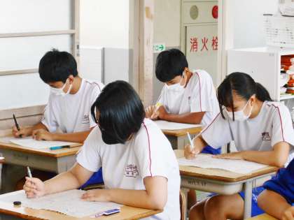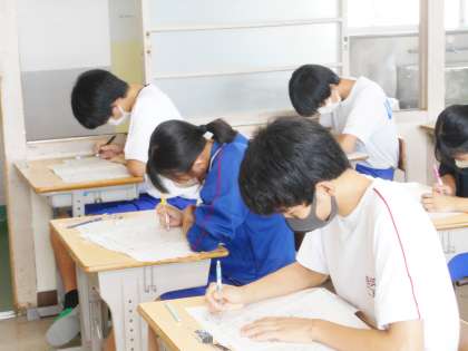 32学級の前期期末テストを受けている様子です。