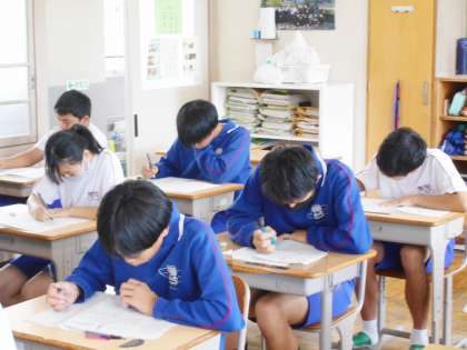 34学級の前期期末テストを受けている様子です。