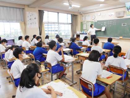 23学級は、理科の授業の様子です。前期期末テストを返却していました。テスト返却後は、解き方・考え方を教師の説明を集中して聞き、確認していました。
