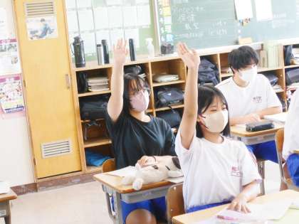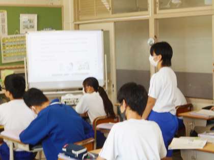 32学級は、英語の「scene➁を読み取ろう」の授業の様子です。積極的に発言するなど、英文解釈の問題に意欲的に取り組んでいました。