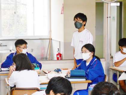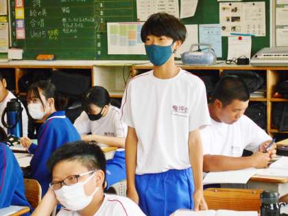 13学級は、数学の「比例」の授業の様子です。グラフから読み取ったことを積極的に発言していました。