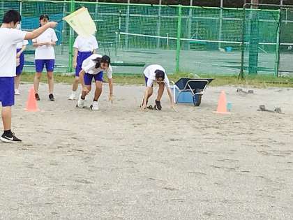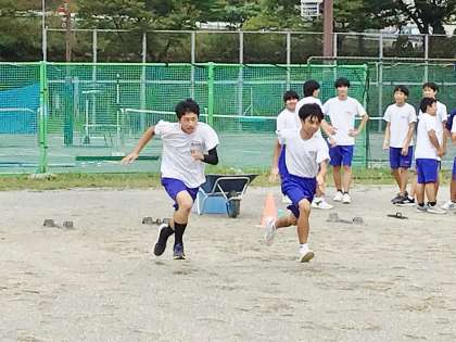34学級は、体育の「50m走」の授業の様子です。50mの記録を計っていました。走り終えた生徒に「記録はどうだった?」と聞くと、「4月より、記録がとても伸びました!」と笑顔が返ってきました。