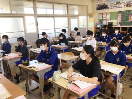 21学級は、技術の「動力や音・信号に変換するしくみ」の授業の様子です。交流誘導モータやステッピングモータについて、デジタル教科書の映像を見ながら、理解を深めていました。