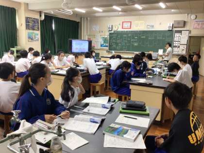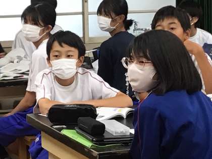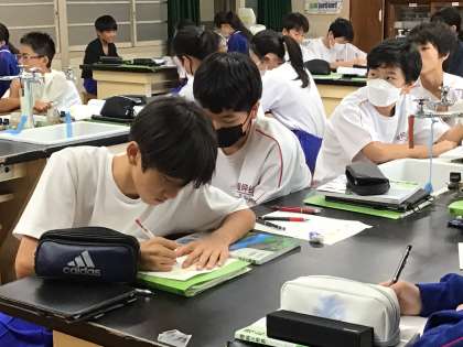 それぞれが考えを持ったうえで動画を確認し、水の粒と砂糖の粒が均等に散らばる様子を理解していました。