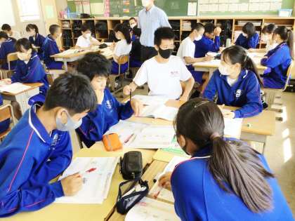 21学級は、道徳科の「個性の伸長」の授業の様子です。班員の長所を班で発表し合い、自分の良さについて再認識していました。発表し合った後、「とてもうれしかった」「自分の長所を改めて感じることができた」と笑顔で話していました。