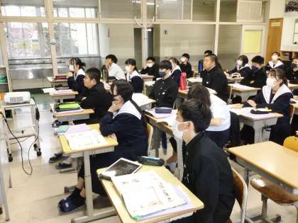 11/7(火) 授業の様子です(1年生) 3 公開日 2023/11/07 更新日 2023/11/07 お知らせ 13学級は、英語の「代名詞」の授業の様子です。本文内容に関する動画を視聴していました。動画から流れてくる英語を集中して聞き、リスニングの力を高めていました。
