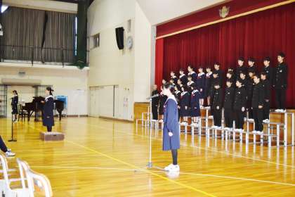 1年生は、インフルエンザ蔓延による学級閉鎖があり、練習を行えない時期もありましたが、今日は、どの学級も体育館にすばらしいハーモニーを響かせていました。歌っている表情、歌い終わった後の清々しい表情を見て、とても感動しました。みんなと一緒に歌ったことは、一生心に残る素敵な思い出になったのではないかと思います。