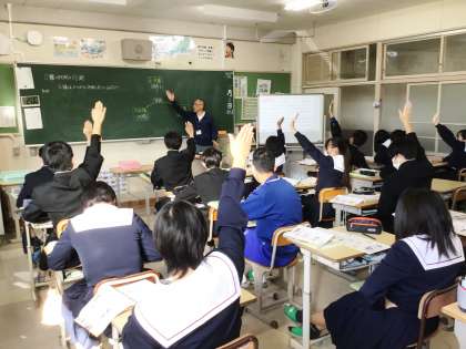 11/8(水) 授業の様子です(3年生) 2 公開日 2023/11/08 更新日 2023/11/08 お知らせ 32学級は、社会の「三権の抑制と均衡」の授業の様子です。三権の関係について教師の説明を聞いた後、学習プリントにまとめながら理解を深めていました。積極的に発言を行うなど、学習意欲を強く感じました。