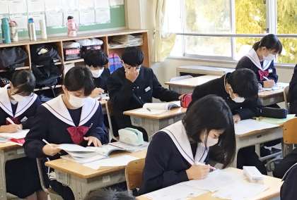 11/16(木) テスト・教育相談週間です 1 公開日 2023/11/16 更新日 2023/11/16 お知らせ 先週より、テスト・教育相談週間が始まりました。 朝の学習を行っている様子です。明日からの後期中間テストに向けて、テキストの問題を解いたり、キュビナの問題を解きながら確認したりと、集中して学習に取り組んでいました。 11学級の朝の学習の様子です。