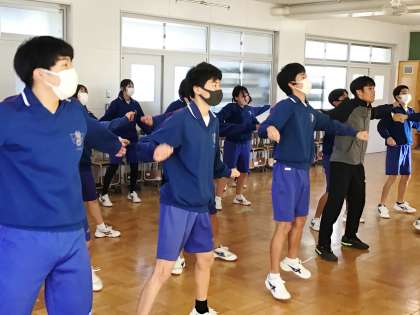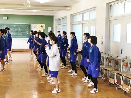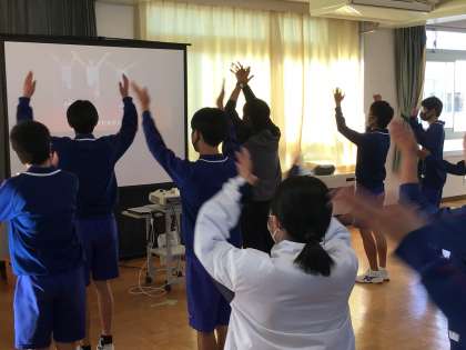 32学級は、体育の「ダンス」の授業の様子です。今日から、この分野に入りました。1年生で既習したダンスを映像を見ながら踊っていました。「久しぶりだけど、けっこう踊れる」と言いながら楽しそうに取り組んでいました。