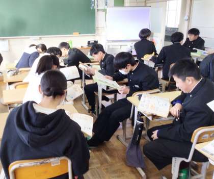 12/8(金) 授業の様子です(3年生) 1 公開日 2023/12/08 更新日 2023/12/08 お知らせ 3年生の授業の様子です。 31学級は、社会の「消費者の権利を守るために」の授業の様子です。消費者基本法の内容について、級友と問題を出し合いながら確認していました。「なかなか覚えられない」と言いながら何度も繰り返し伝え合っていました。