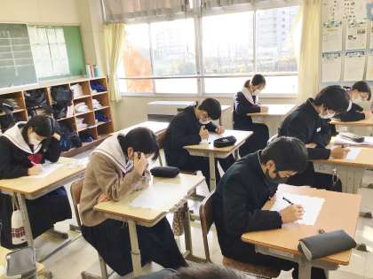 12/8(金) 授業の様子です(3年生) 2 公開日 2023/12/08 更新日 2023/12/08 お知らせ 32学級は、英語の授業の様子です。来週行われる学習診断テストに向けて、対策プリントを集中して解いていました。一問一問集中して解いている姿からテストにかける気持ちが伝わってきました。