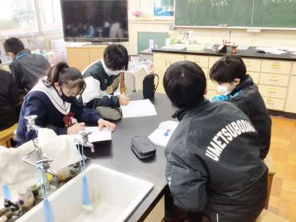 12/11(月) 授業の様子です(2年生) 3 公開日 2023/12/11 更新日 2023/12/11 お知らせ 23学級は、理科の「電流と磁界」の授業の様子です。「コイルと磁石で発生する誘導電流について調べる」実験を行った後、誘導電流の大きさや向きの変化についてノートにまとめていました。