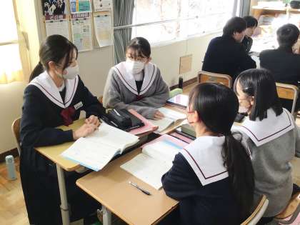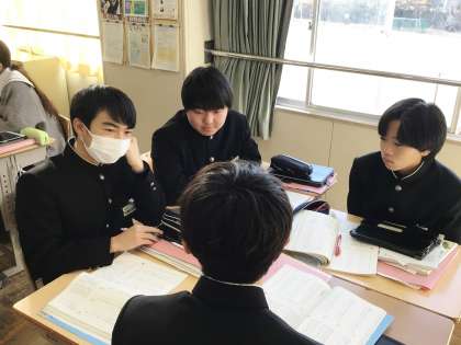 12/13(水) 授業の様子です(3年生) 4 公開日 2023/12/13 更新日 2023/12/13 お知らせ 34学級は、国語の「君待つとー万葉・古今・新古今—」の授業の様子です。今後深く学んでいきたい和歌を班で話し合っていました。