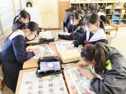「モザイク壁画」を作成している様子です。