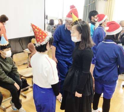 12/15(金) 特別支援学級が素敵なクリスマス会を開きました 1 公開日 2023/12/15 更新日 2023/12/15 お知らせ 特別支援学級が集会室で、クリスマス会を開きました。 保護者の方々、梅坪小の小学校6年生の児童を招待し、今まで準備してきたハンドベル、ダンスを披露したり、ゲームを一緒に行ったりと、楽しい時間を過ごしました。クリスマス会は、生徒たちの明るい声、うれしそうな表情に溢れていました。心温まる素敵なクリスマス会でした。