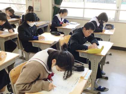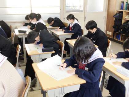 12/20(水) 授業の様子です(1年生) 1 公開日 2023/12/20 更新日 2023/12/20 お知らせ 1年生の授業の様子です。 11学級は、数学の授業の様子です。既習した内容のまとめプリントを行っていました。一問一問集中して解いていました。