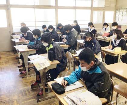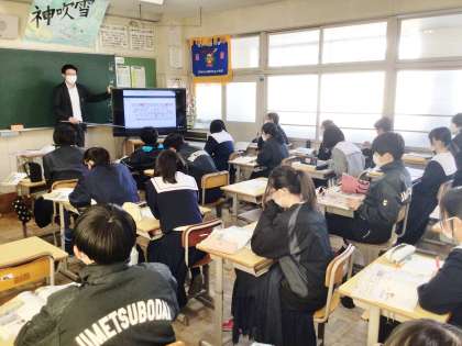 23学級は、社会の「開国後の政治と経済」の授業の様子です。デジタル教科書の資料を見ながら、小判の質を落としたため、江戸幕府への不満が高まっていったことを確認していました。