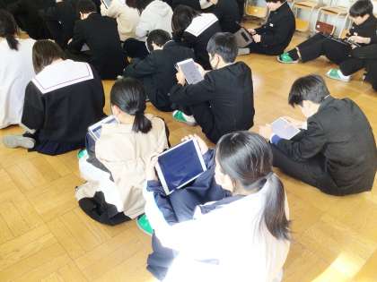 進路指導主事から、公立高校のWeb出願の登録の行い方、期限について、説明しました。また、今週末から入試も始まることより、受検に向けての確認も行いました。話を聞いている生徒の表情から、緊張感が伝わってきました。説明後の質問タイムでは、積極的に疑問点を聞き、確認していました。