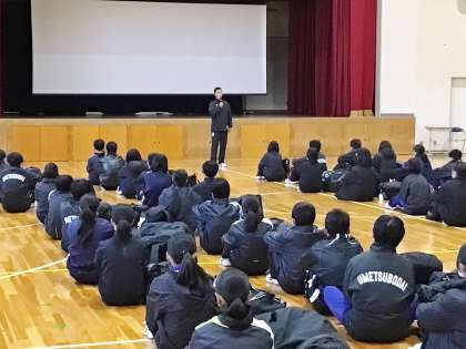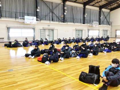 いよいよ今日から待ちに待った自然教室が始まります。 出発式の様子です。