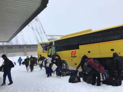 荷物を運び、入所式を行います。