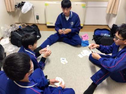 お風呂までの自由時間を部屋で楽しく過ごしています。
