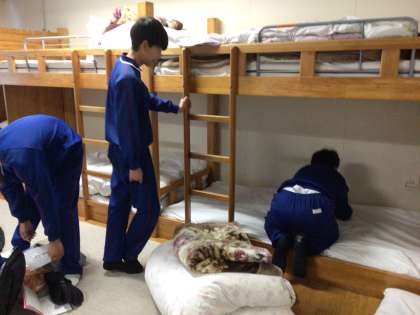 着替えをして、ベッドメイキングをしました。