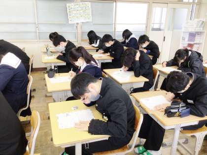 1/19(金) 授業の様子です(3年生) 3 公開日 2024/01/19 更新日 2024/01/19 お知らせ 33学級は、理科の「月と惑星の運動」の単元テストの様子です。一問一問集中して解いていました。入試に向けての緊張感が伝わってきました。