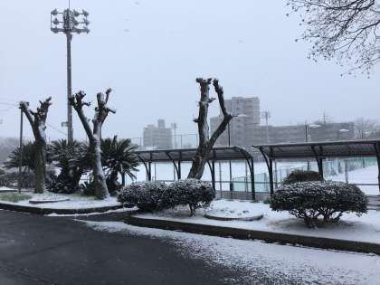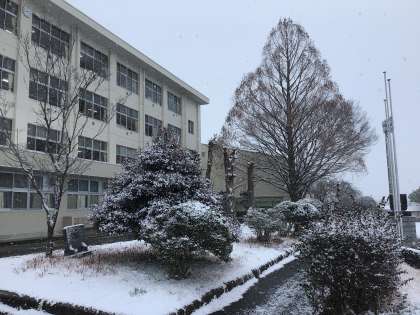 朝からの雪があっという間に降り積もり、運動場は真っ白になりました。豊田市は午後には雪は降り止むという予報が出ていますが、明日も厳しい寒さは続きます。路面が凍結し、滑りやすくなっていると思いますので、登下校の際は、気をつけてください。
