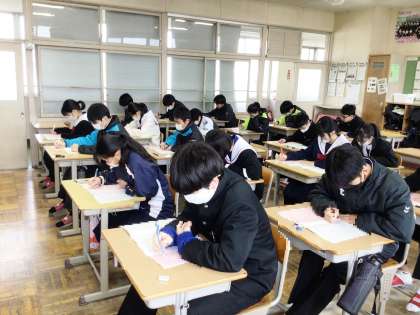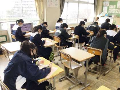 23学級は、英語の授業の様子です。来週行われる学習診断テストに向けて、対策問題に取り組んでいました。一問一問集中して解いていました。