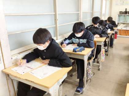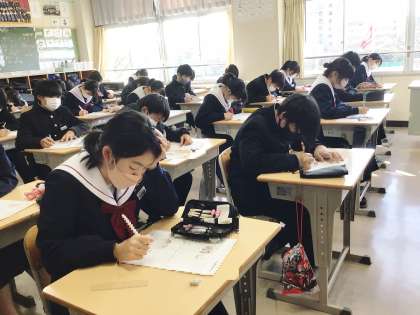 12学級は、社会の「南アメリカ州、オセアニア州」の単元テストの様子です。南アメリカ州、オセアニア州は、来週行われる学習診断テストの範囲になっています。解けなかった問題は復習しておきましょう。