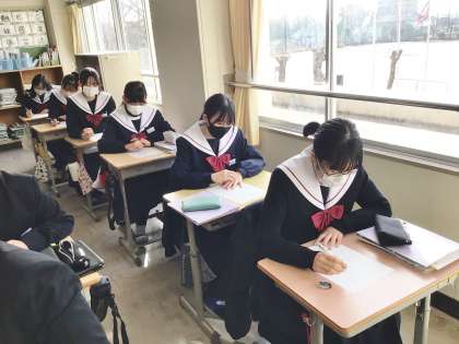 13学級は、英語の授業の様子です。来週行われる学習診断テストに向けて、リスニング問題の解き方、考え方について、対策プリントの問題を解きながら確認していました。
