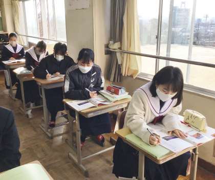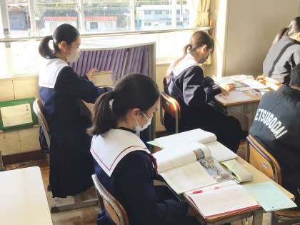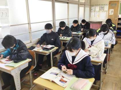 2/8(木) 授業の様子です(2年生) 3 公開日 2024/02/08 更新日 2024/02/08 お知らせ 23学級は、英語の「Unit7」の授業の様子です。来週の学年末テストに向けて、重要な熟語、単語等について、教科書に印をつけたり、ノートに書き込んだりしながら、確認していました。