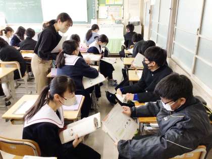 2/9(金) 授業の様子です(1年生) 3 公開日 2024/02/09 更新日 2024/02/09 お知らせ 13学級は、英語の「過去形の疑問文、否定文」の授業の様子です。昨日の自分の行動について、過去形を使いながら伝え合ったり、本文の内容を読み合ったりして、過去形の文法について理解を深めていました。