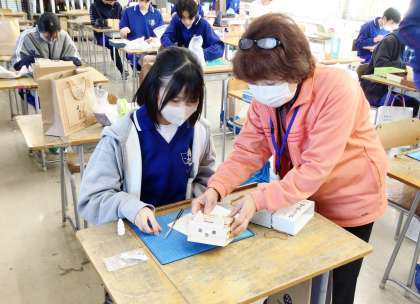 34学級は、美術の「寄せ木細工」の授業の様子です。木片をボンドで接着し好みの形を作っていました。一番下の写真は、完成した「寄せ木細工」です。どの作品も工夫が施されており、すばらしいと思いました。