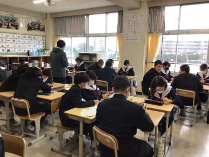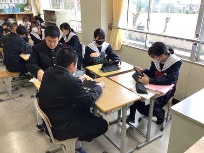 「根拠を示して説明しよう」の単元で、自分たちが興味をもったことについてアンケートをとり、グループごとにまとめる活動をしていました。