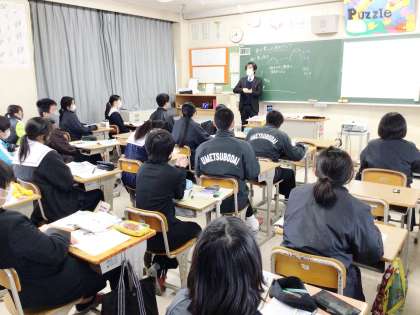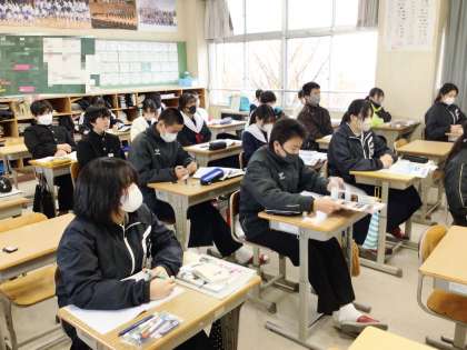 21学級は、理科の「天気の変化」の授業の様子です。雨や雪の降り方について、教科書の資料等で確認しながら、理解を深めていました。