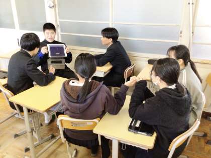 34学級は、国語の授業の様子です。今日が、最後の国語の授業です。級友と和気あいあいとした雰囲気で1年間の思い出を語り合っていました。