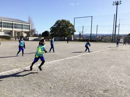 23学級は、体育の「アルティメット」の授業の様子です。パスの受け渡しの練習を繰り返し行っていました。「ディスクのコントロールが難しい」「ディスクの軌道を意識してキャッチするようにした方がいいな」という声が聞こえてきました。