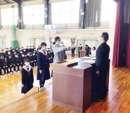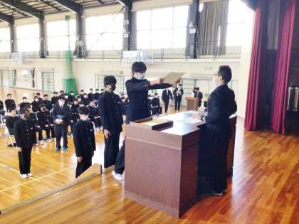 1,2限に、3年生が卒業式の練習を行いました。3年生の練習は今日からスタートです。卒業証書授与の動きを実際に舞台で練習しながら確認していました。