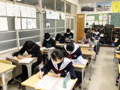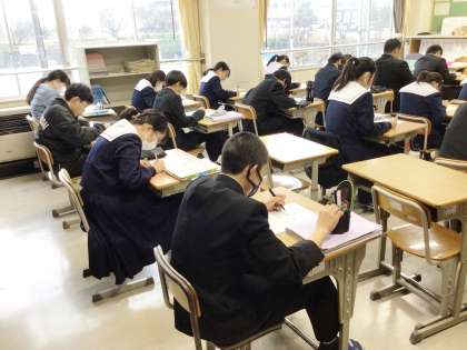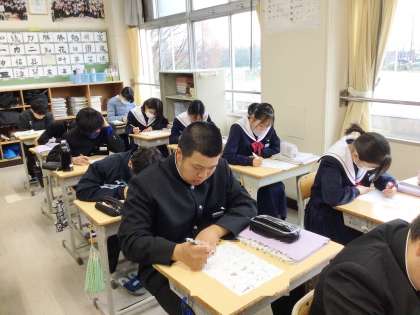 13学級は、英語の授業の様子です。リスニング問題を解いていました。解けなかった問題は復習し、2年生に備えましょう。